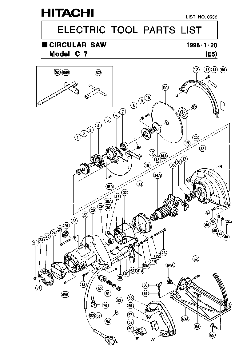 Folgende Ersatzteile für Hikoki (Hitachi) C7 - Kreissäge können Sie hier bestellen: