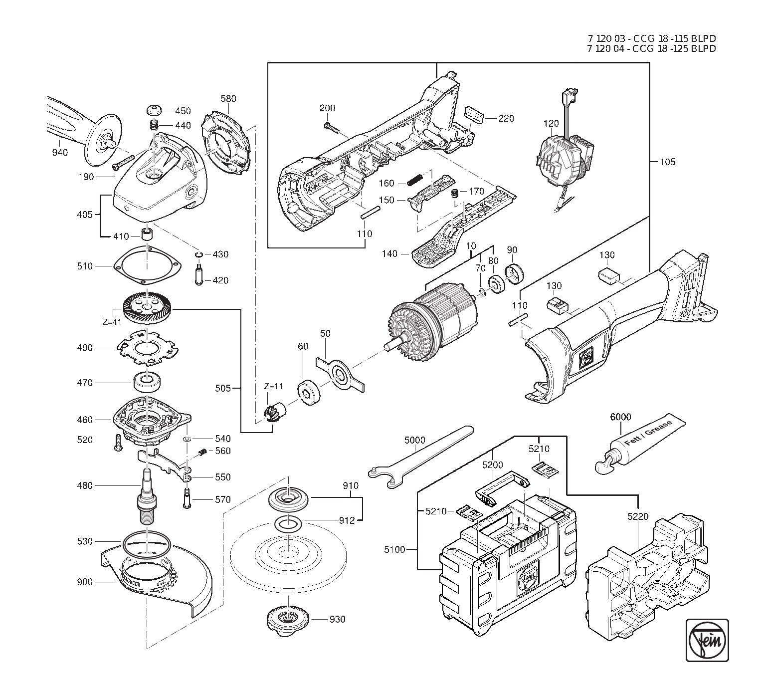 Zeichnung Sollten Sie Fragen zu einem Ersatzteil vom Fein CCG18-125BLPD 71200400940 haben, können Sie uns gerne eine E-Mail (mit einem Foto vom Typenschild Ihres Gerätes) schreiben oder eine Ersatzteilanfrage stellen.