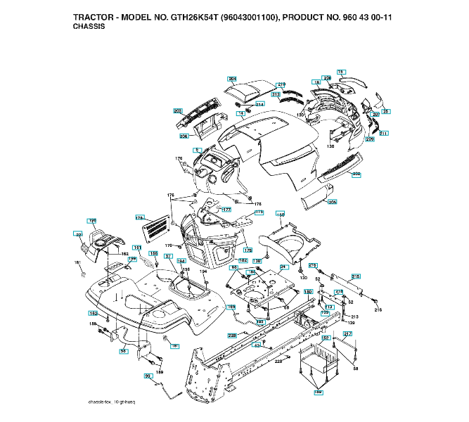 Ersatzteile für Husqvarna Gartentraktor GTH26K54 T ( 96043001100, 2006-03 ) CHASSIS & GEHÄUSE: