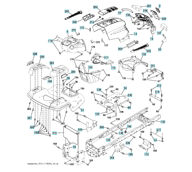 Ersatzteile für Husqvarna Gartentraktor LT126 ( 96041020403, 2013-04 ) CHASSIS & GEHÄUSE: