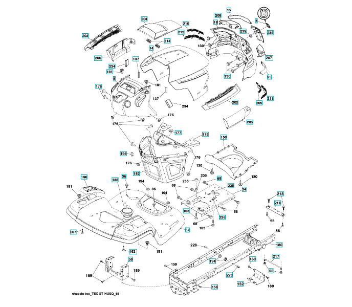 Folgende Ersatzteile für Husqvarna Gartentraktor YTH21K46 ( 96045002101, 2010-06 ) CHASSIS / RAHMEN können Sie hier bestellen: