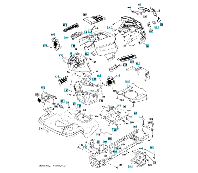 Ersatzteile für Husqvarna Gartentraktor YTH224T ( 96041024800, 2011-11 ) CHASSIS / RAHMEN: