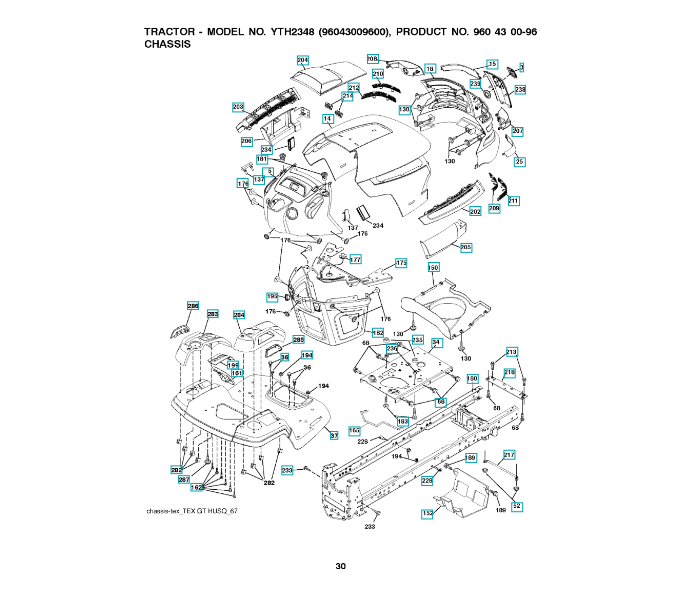 Folgende Ersatzteile für Husqvarna Gartentraktor YTH2348 ( 96043009600, 2009-10 ) CHASSIS / RAHMEN können Sie hier bestellen: