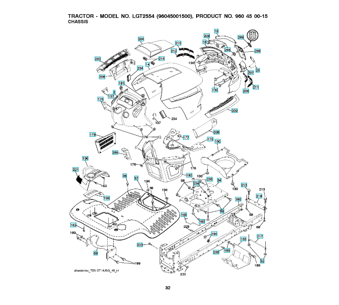 Folgende Ersatzteile für Husqvarna Gartentraktor LGT2554 ( 96045001500, 2009-01 ) CHASSIS / RAHMEN können Sie hier bestellen: