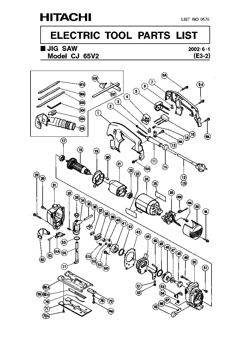 Zeichnung Sollten Sie Fragen zu einem Ersatzteil vom Hikoki (Hitachi) CJ65V2 - Stichsäge haben, können Sie uns gerne eine E-Mail (mit einem Foto vom Typenschild Ihres Gerätes) schreiben oder eine Ersatzteilanfrage stellen.