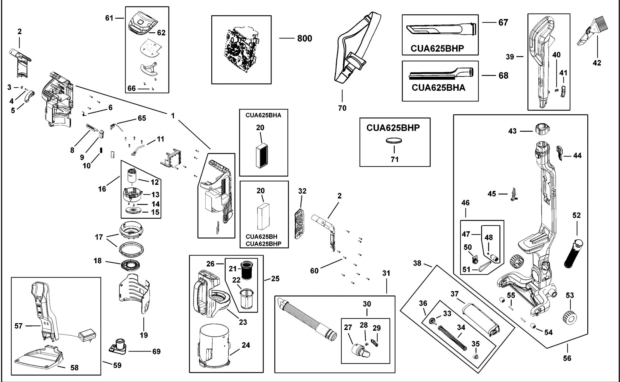 Ersatzteile für Black&Decker CUA625BHA-QW TYPE H1 HANDSTAUBSAUGER XX96 CUA625BHA-QW CUA625BHA