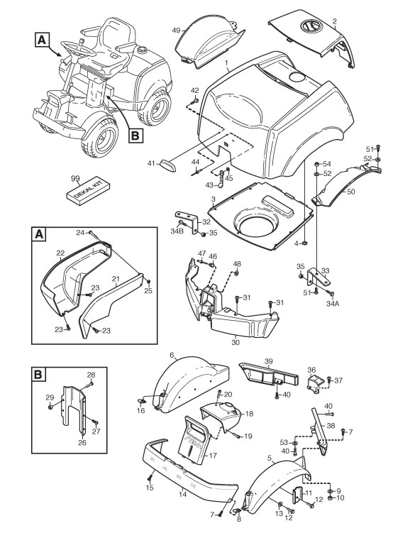Zeichnungen von Stiga Frontaufsitzmäher Park Pro mit Geräte Nr. 13-6216-15 ab Baujahr 2004