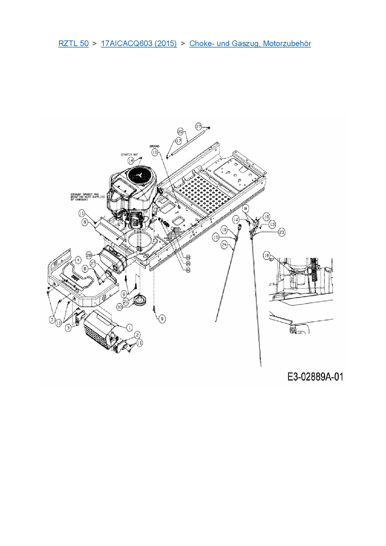 Ersatzteile für Zero Turn Cub Cadet RZTL 50 aus der Zeichnung Choke- und Gaszug, Motorzubehör: