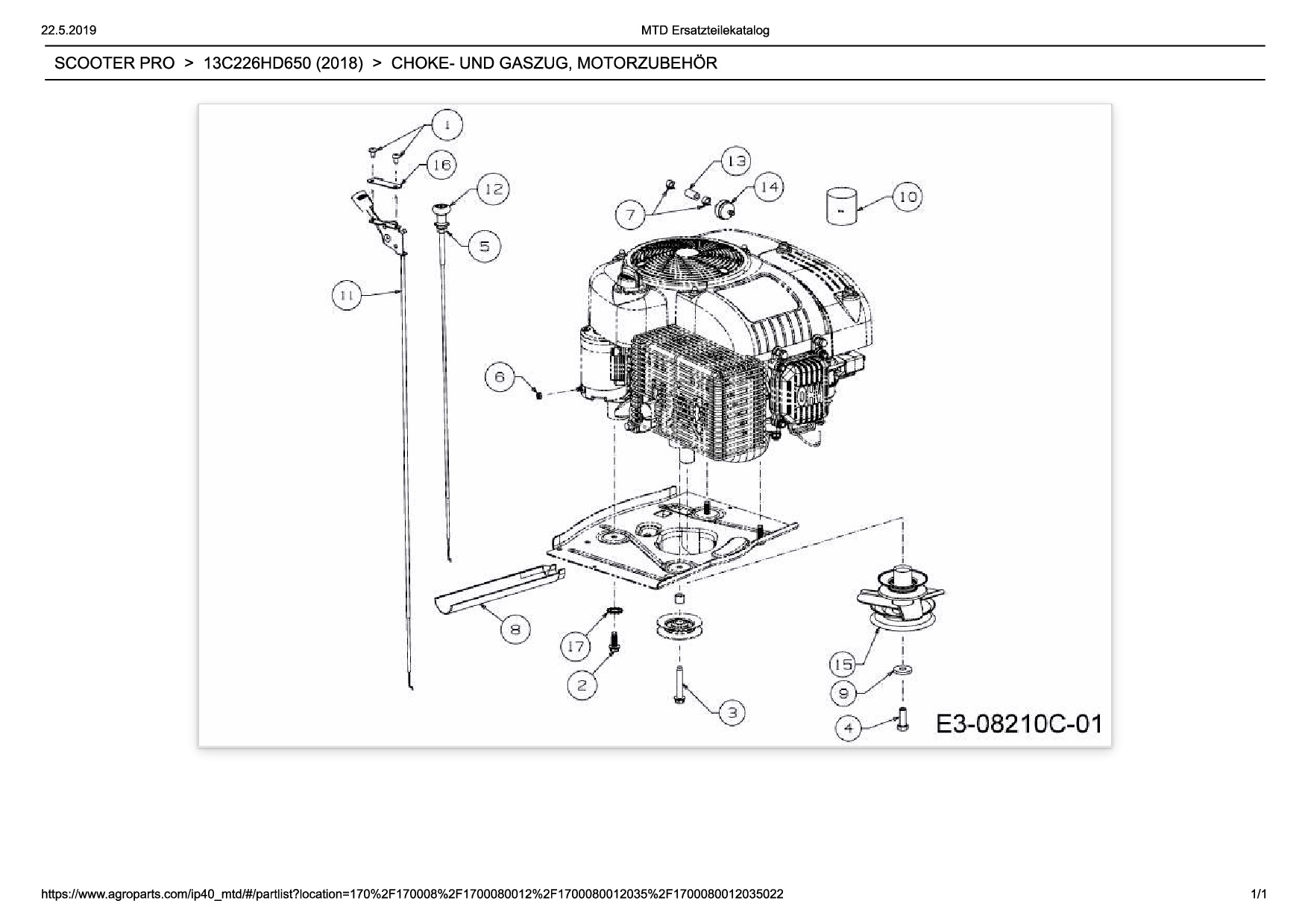 Ersatzteile für Rasentraktor Wolf-Garten Expert SCOOTER PRO aus der Zeichnung Choke- und Gaszug, Motorzubehör: