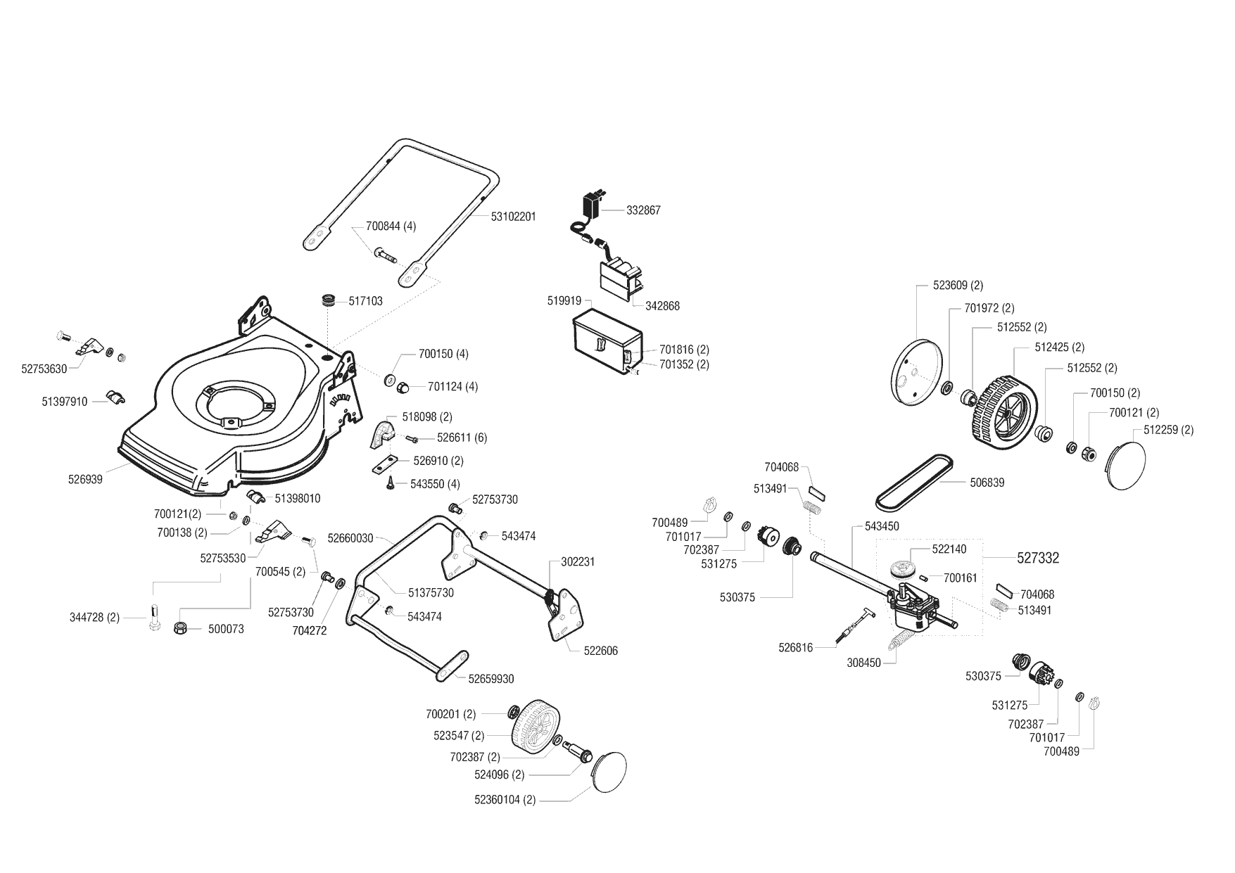 Zeichnungen von Ginge Benzinrasenmäher Comfort 47 AT ESB mit der Geräte-Artikelnr. 117765: