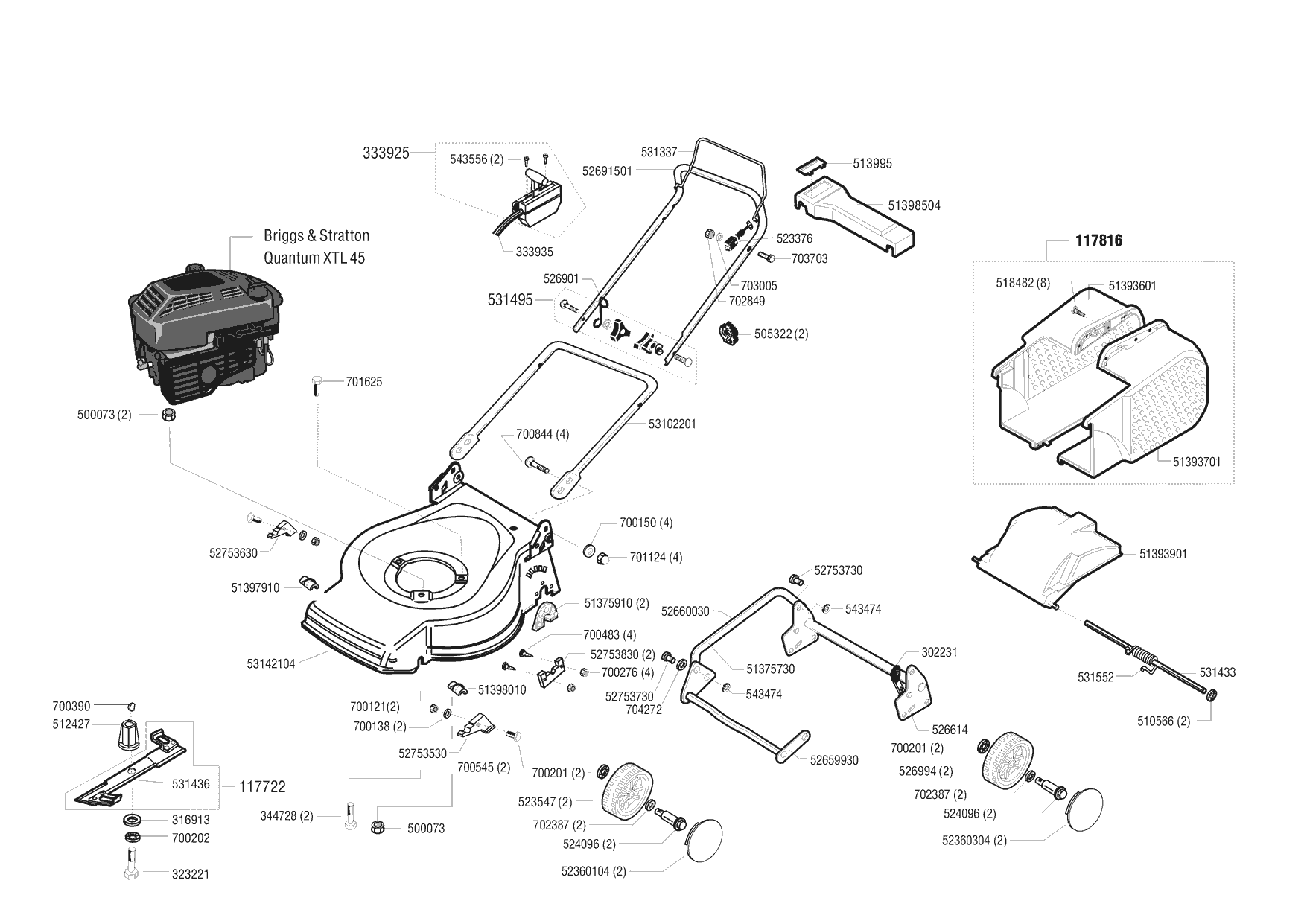 Zeichnungen von Ginge Benzinrasenmäher Comfort 47 BB mit der Geräte-Artikelnr. 117761: