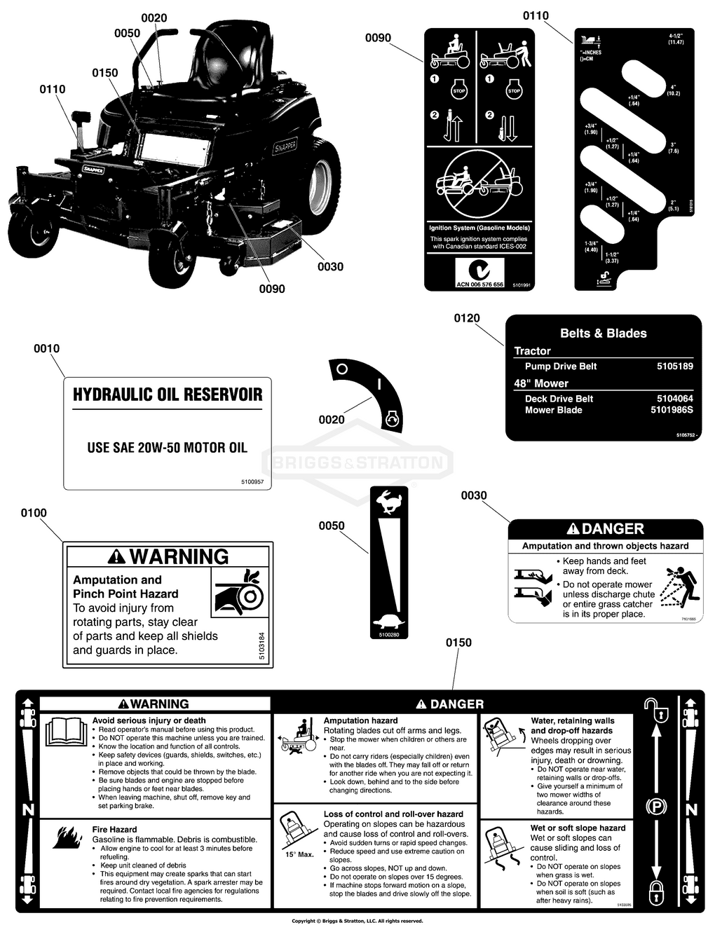 Hier finden Sie alle Ersatzteile von Snapper 5901717 - (ZT, 48" FAB, 21.5 KAV, SNP, 460Z 49 ST) 48" (122 cm), 460Z Series der Zeichnungsgruppe Decal Group - Safety & Operation: