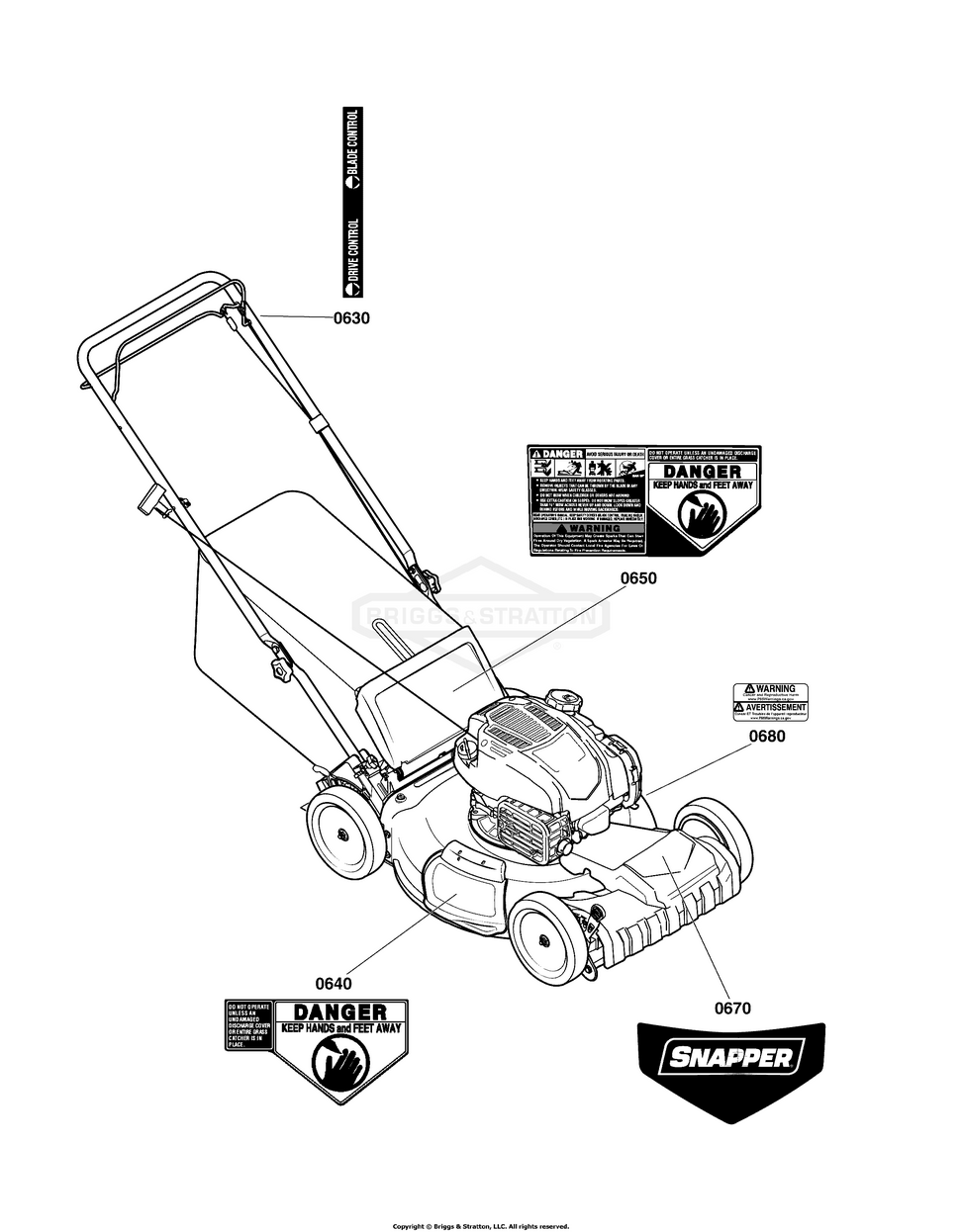 Zeichnung Snapper 1696853-00 - SP65, 12A-A2BE707, 550 Series 21" FWD Single Speed Walk Behind Mower - Zeichnung Decals Group: