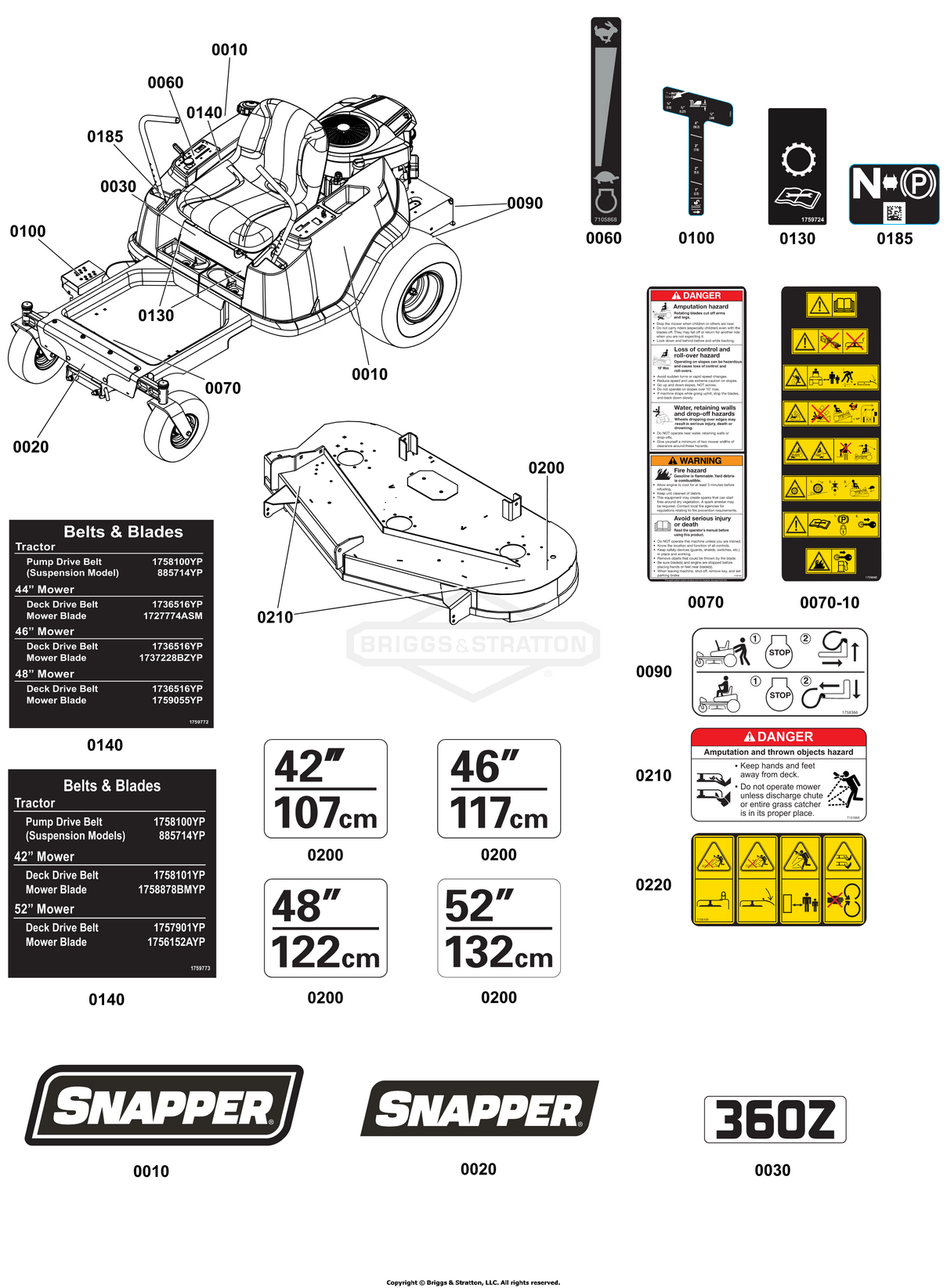 Zeichnung Snapper 2691507-00 - ZT2348, 48" (122cm) Fabricated Mower Deck, 23HP B&S, 360Z Series - Zeichnungsgruppe Decals Group: