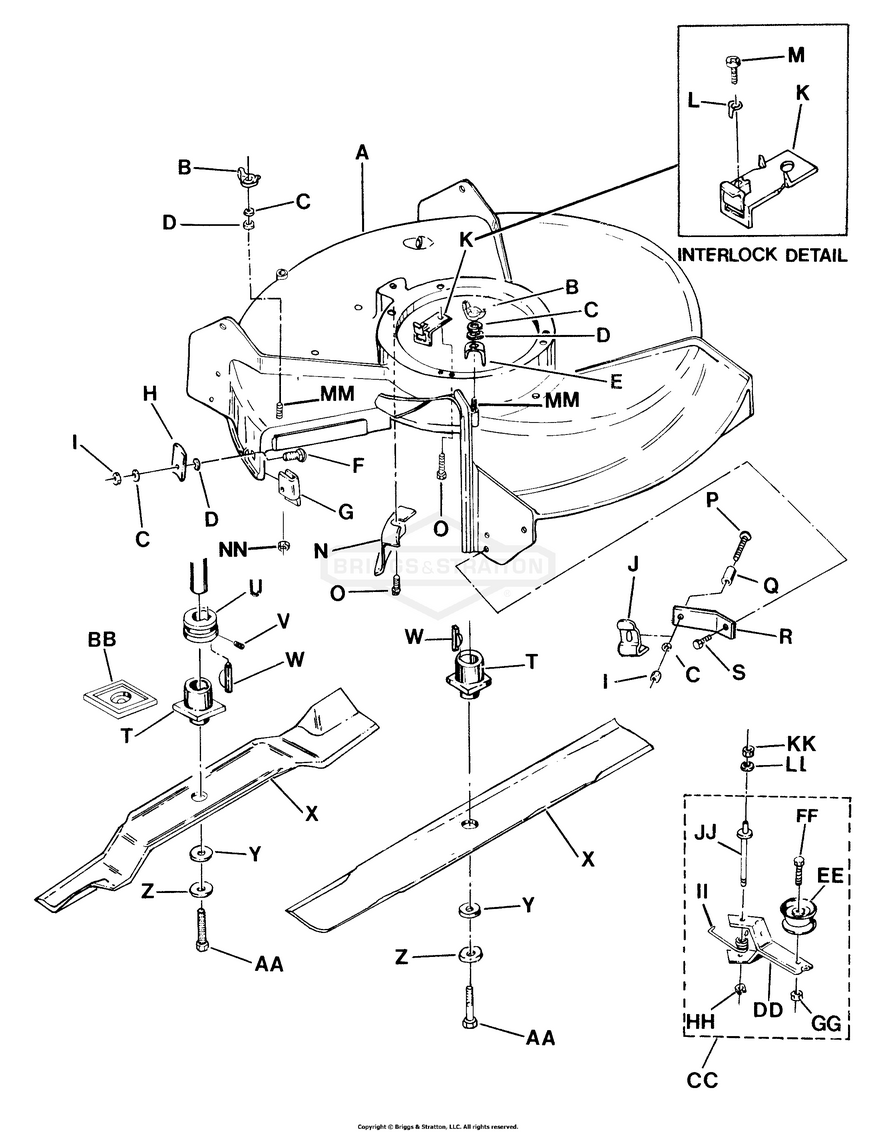 Zeichnung Snapper 82353 - V182, 18" 3.5 HP Cast Deck Side Discharge Series 2 - Zeichnungsgruppe Deck, Blade, Interlock: