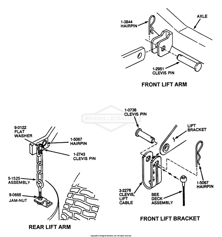 Deck Hanger Detail, Rear Lift Arm, Front Lift Bracket