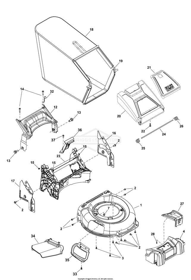 Hier finden Sie alle Ersatzteile von Murray Rasenmäher 2691473-01 - EQ500, Murray 18" Self Propelled Walk Behind Mower (2019) der Zeichnungsgruppe Deck und Fangbox:
