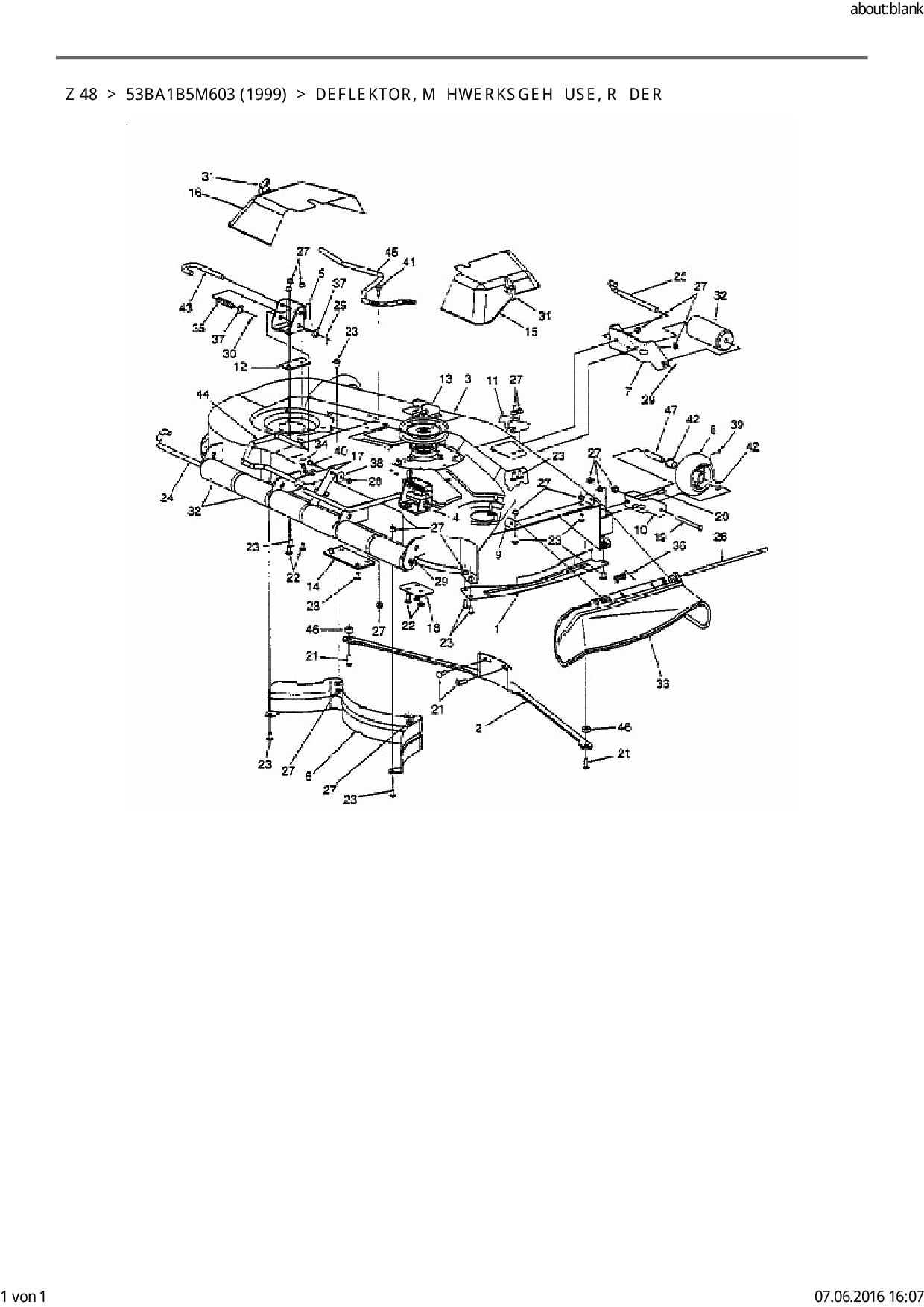 Ersatzteile für Zero Turn Cub Cadet Z 48 aus der Zeichnung Deflektor, Mähwerksgehäuse, Räder 1: