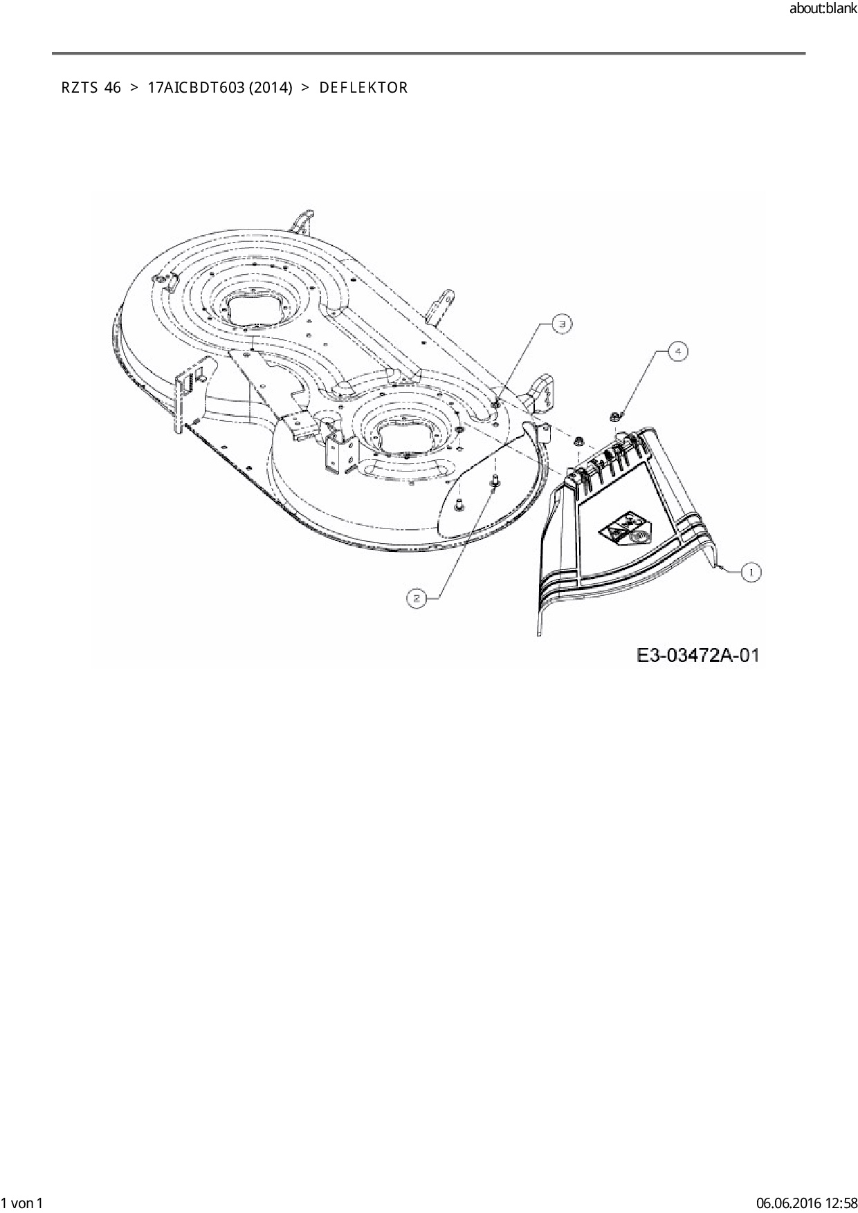 Ersatzteile für Zero Turn Cub Cadet RZTS 46 aus der Zeichnung Deflektor: