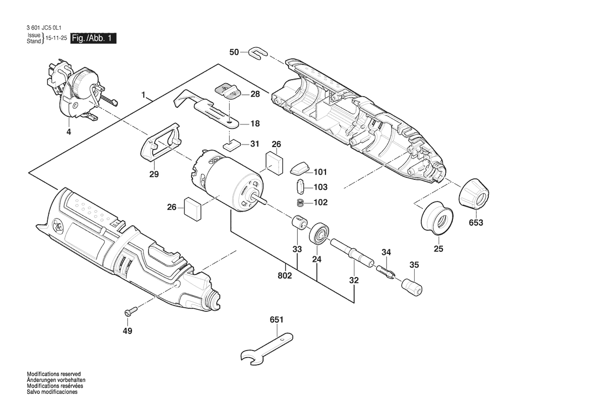 Ersatzteile für Bosch Drehwerkzeug GRO 12V-LI | 12 V | 026 - AS (3 601 JC5 0L1)