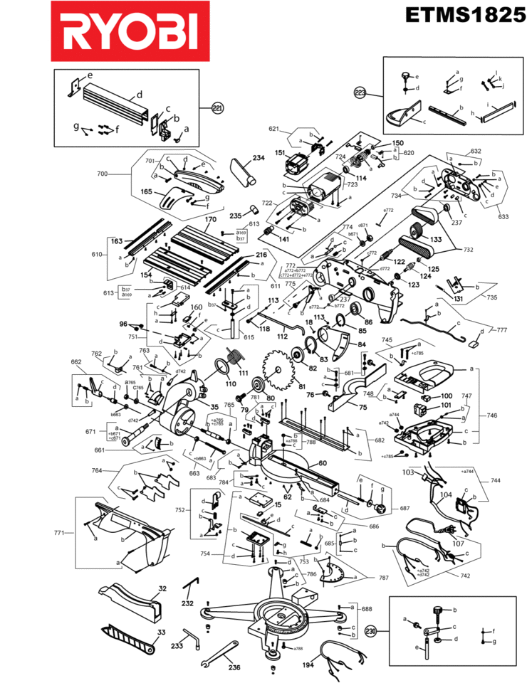 Ersatzteile für Tischkreissäge ETMS1825 (5133000142) von Ryobi: