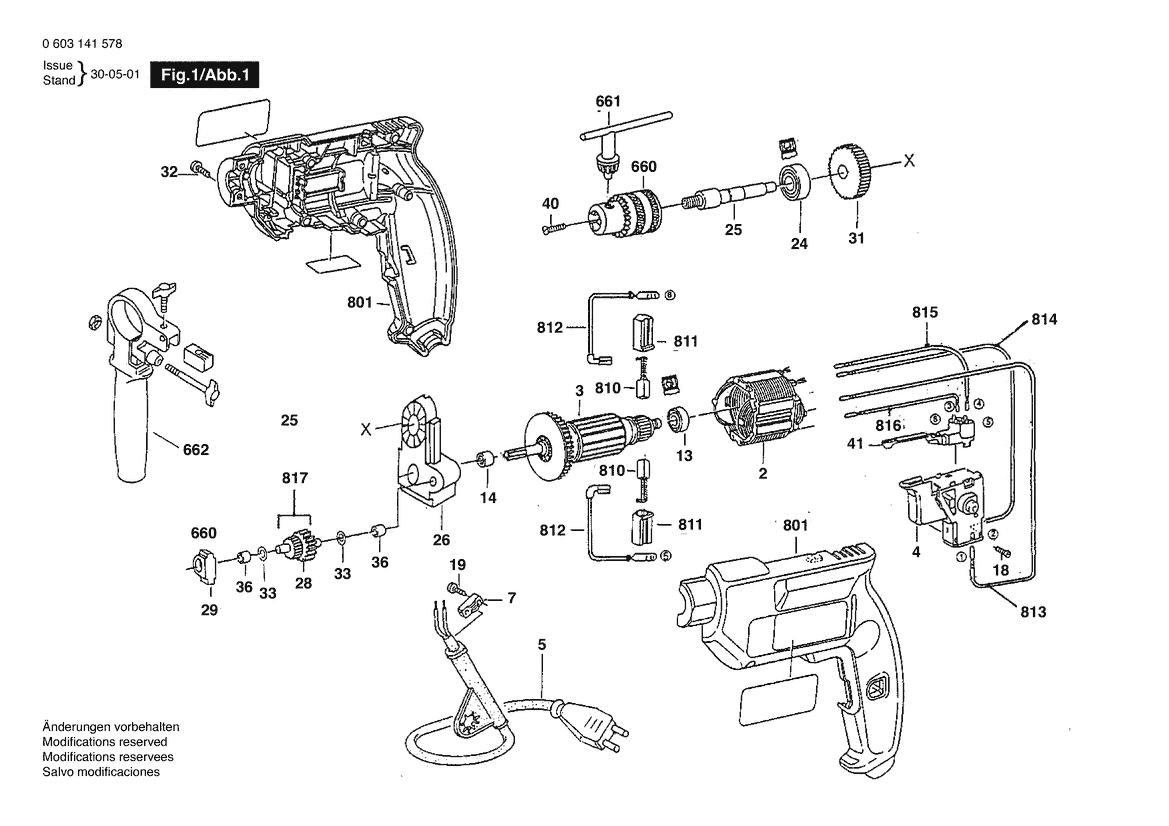 Zeichnung Sollten Sie Fragen zu einem Ersatzteil vom Bosch Eingang-Bohrmaschine PBM 550-RE | 127 V | 025 - AMS (0 603 141 512) haben, können Sie uns gerne eine E-Mail (mit einem Foto vom Typenschild Ihres Gerätes) schreiben oder eine Ersatzteilanfrage stellen.