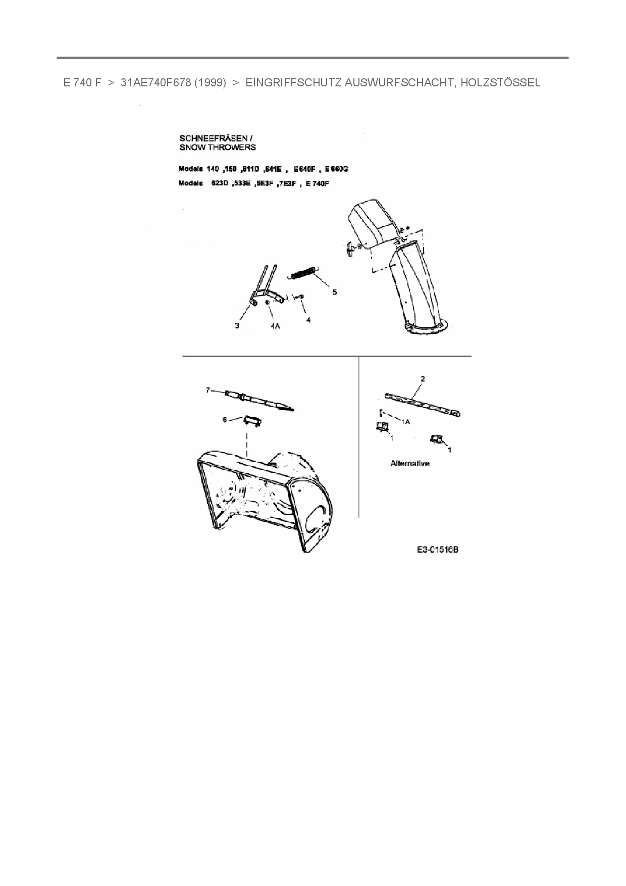 Ersatzteile für Schneefräse MTD E 740 F aus der Zeichnung Eingriffschutz Auswurfschacht, Holzstössel:
