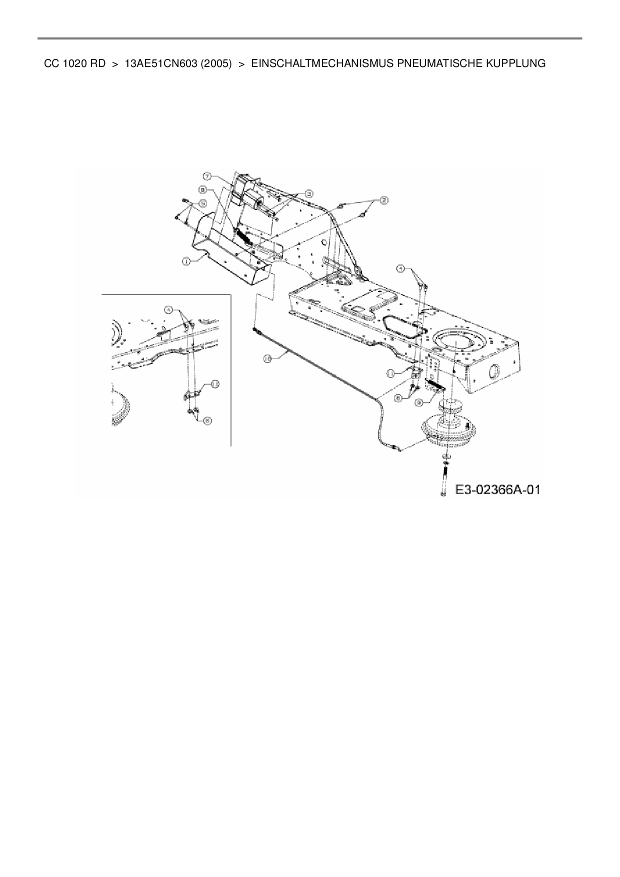 Ersatzteile für Rasentraktor Cub Cadet CC 1020 RD aus der Zeichnung Einschaltmechanismus pneumatische Kupplung: