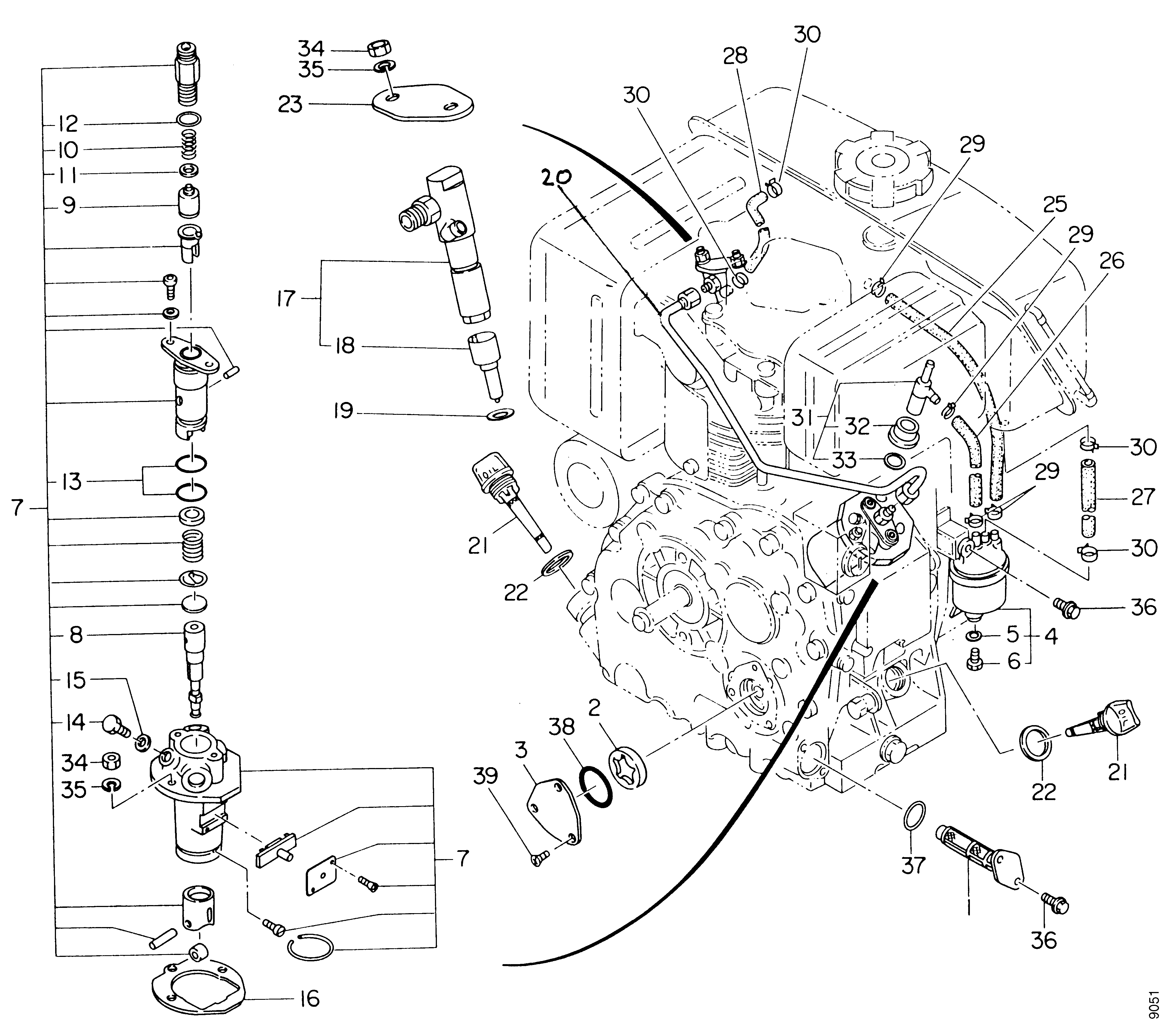 Ersatzteile für Agria # Einachser # agria 3400 # Art-Nr 3400731 | agria 3400 D | Robin DY27-2D 4,2kW, Handstart, Differenzial, Einscheibentrockenkuppl. # Motor Einzelteile # Einspritzpumpe | Robin DY27