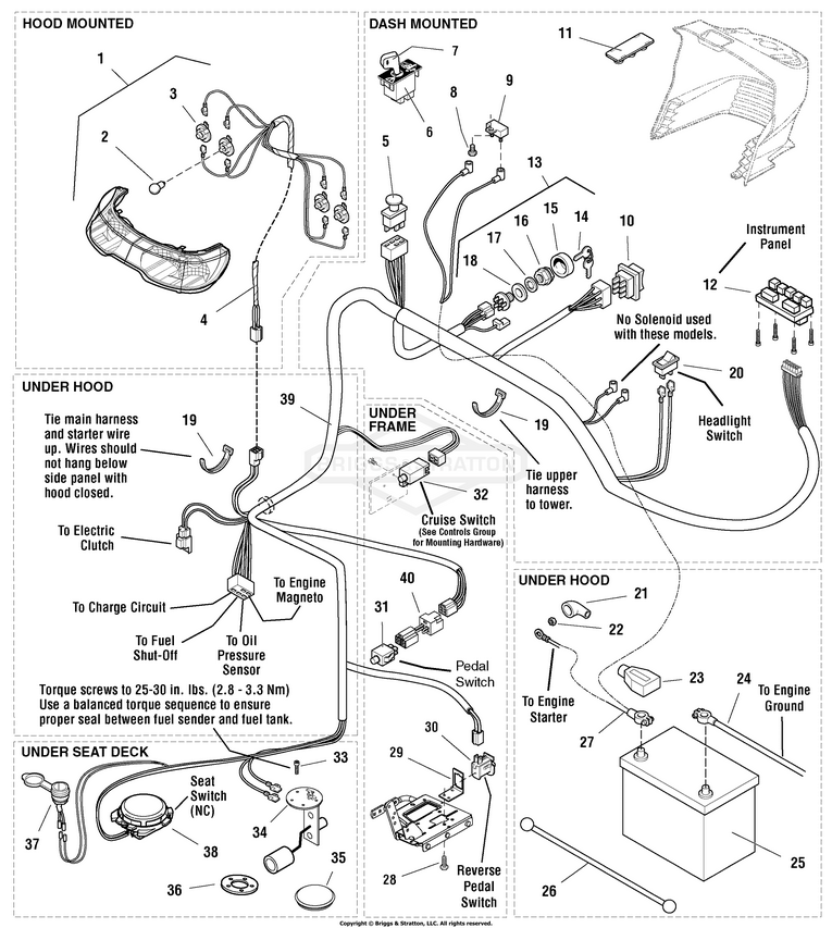 Hier finden Sie alle Ersatzteile von Snapper 1694621 - GT2354, 54" 23 HP Hydro Drive Garden Tractor der Zeichnungsgruppe Electrical Group: