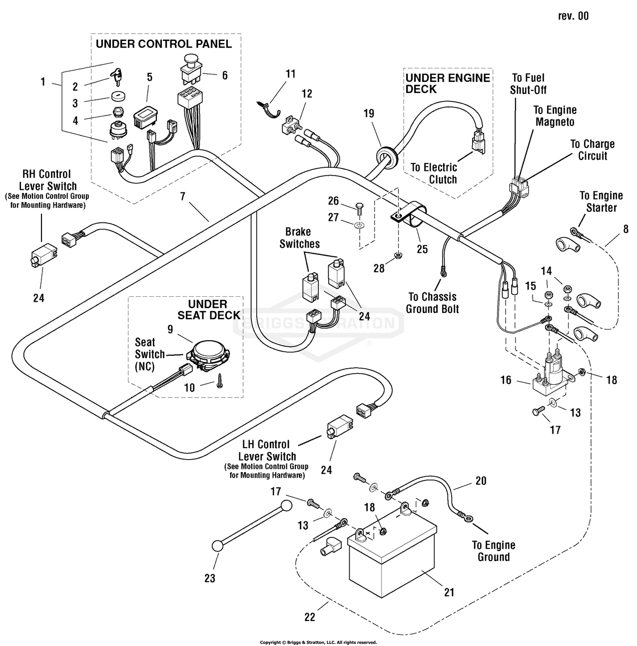 Hier finden Sie alle Ersatzteile von Snapper 5900748 - 355ZB2654, 54" 26 HP ZTR 355Z Series der Zeichnungsgruppe Electrical Group:
