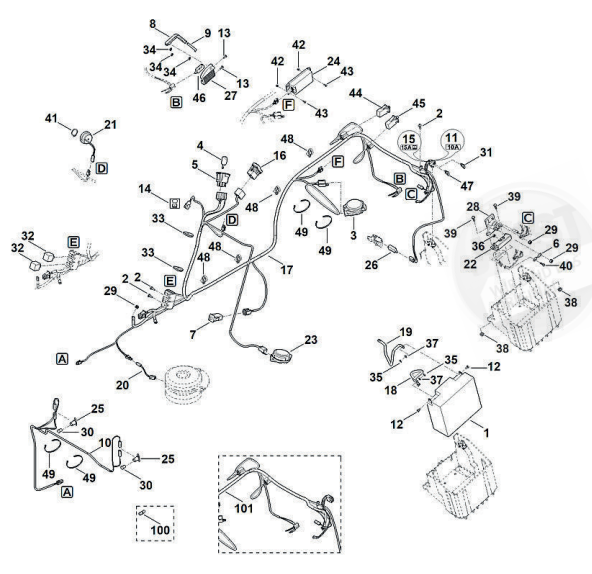 Hier finden Sie alle Ersatzteile von Stihl Aufsitzmäher RT 5097.0 Z der Zeichnungsgruppe Elektrische Bauteile: