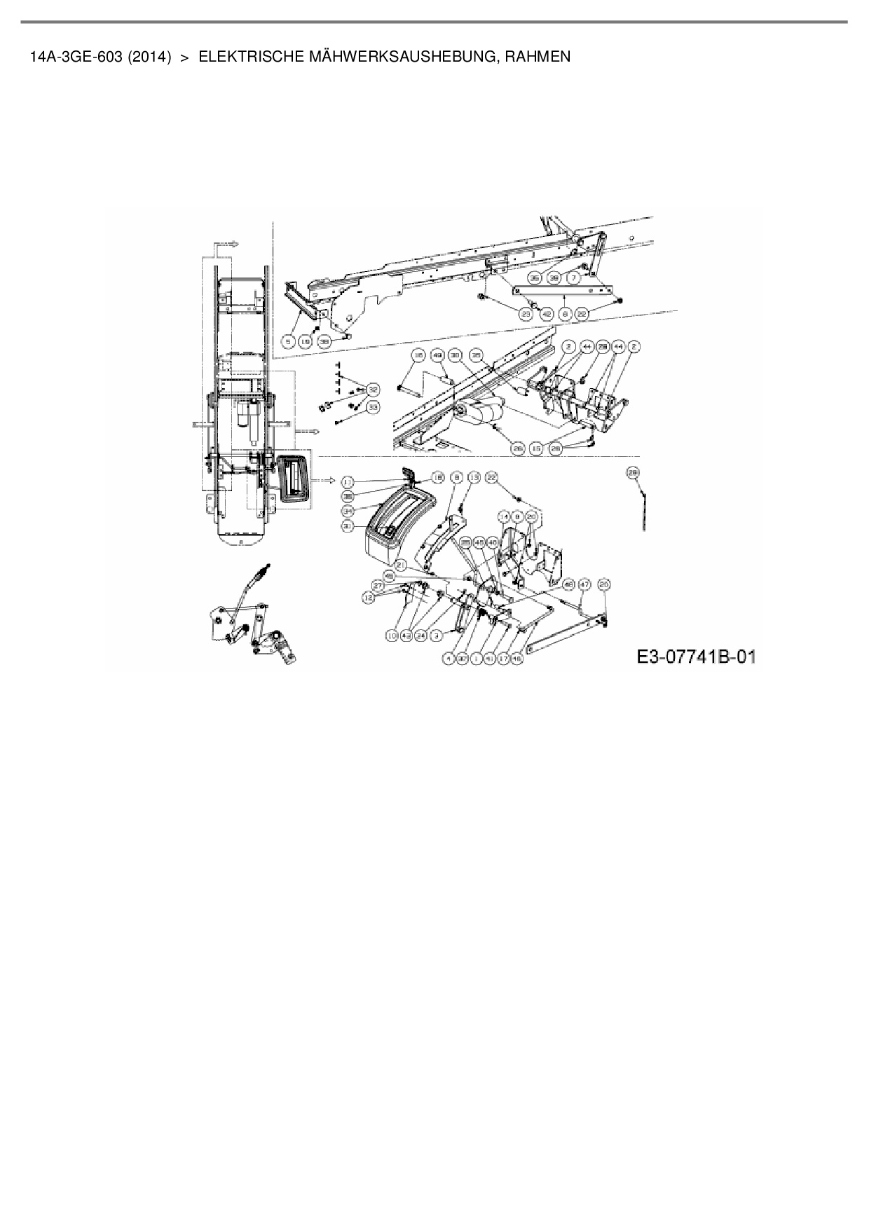 Download Ersatzteil-Zeichnung Cub Cadet GTX 2100 Zeichnung Elektrische Mähwerksaushebung, Rahmen (JPG-Format)