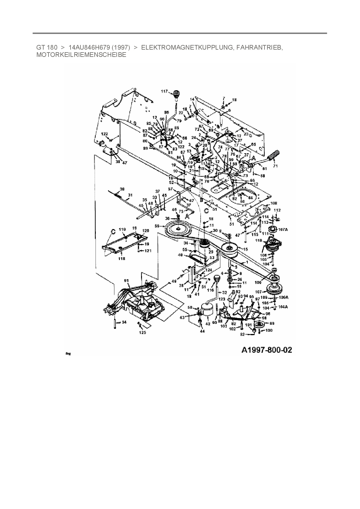 Zeichnung für White Gartentraktor GT 180 mit der Geräte-Artikelnr. 14AU846H679 ab Baujahr 1997: