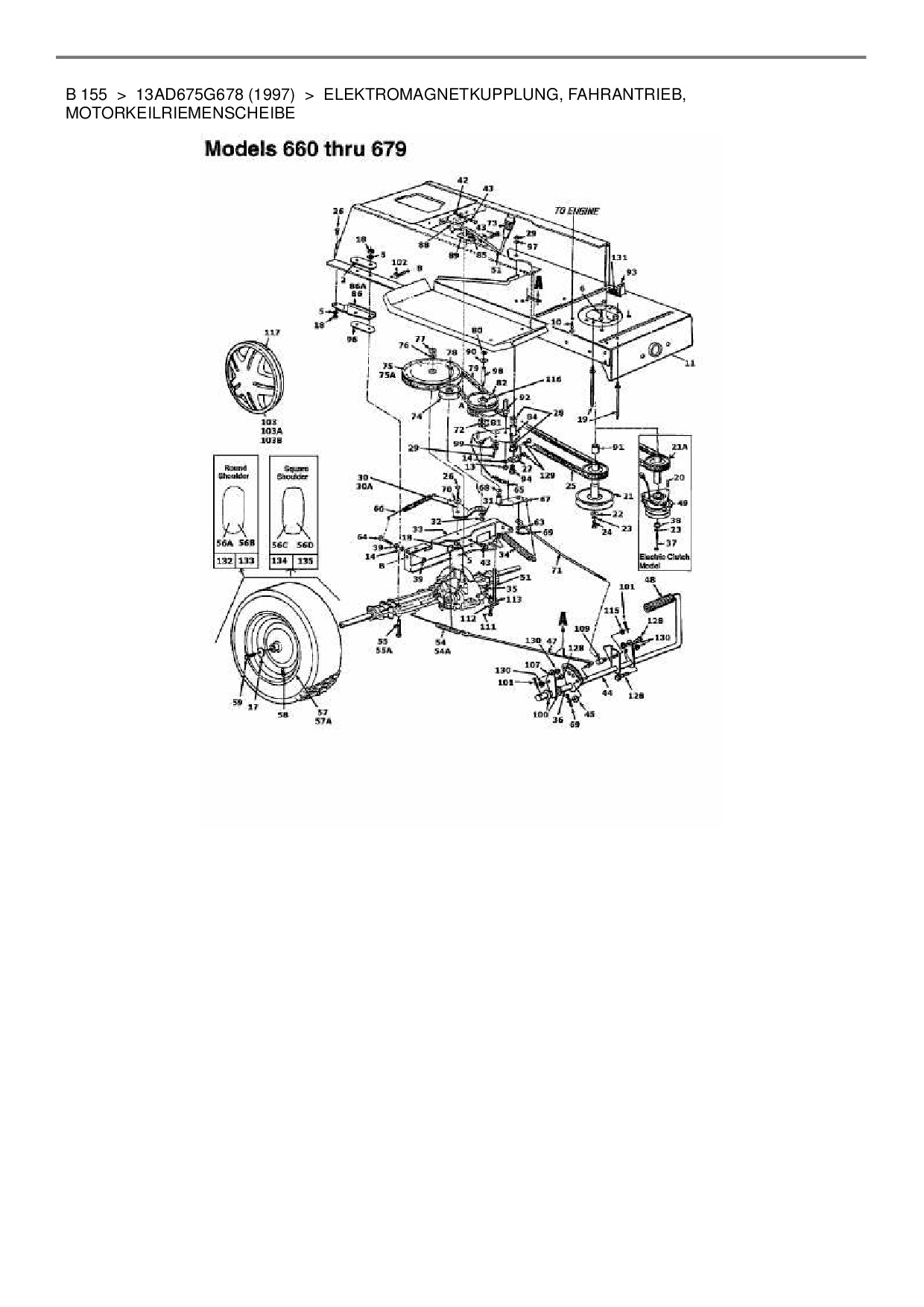 Download Ersatzteil-Zeichnung MTD B 155 Zeichnung Elektromagnetkupplung, Fahrantrieb, Motorkeilriemenscheibe (JPG-Format)