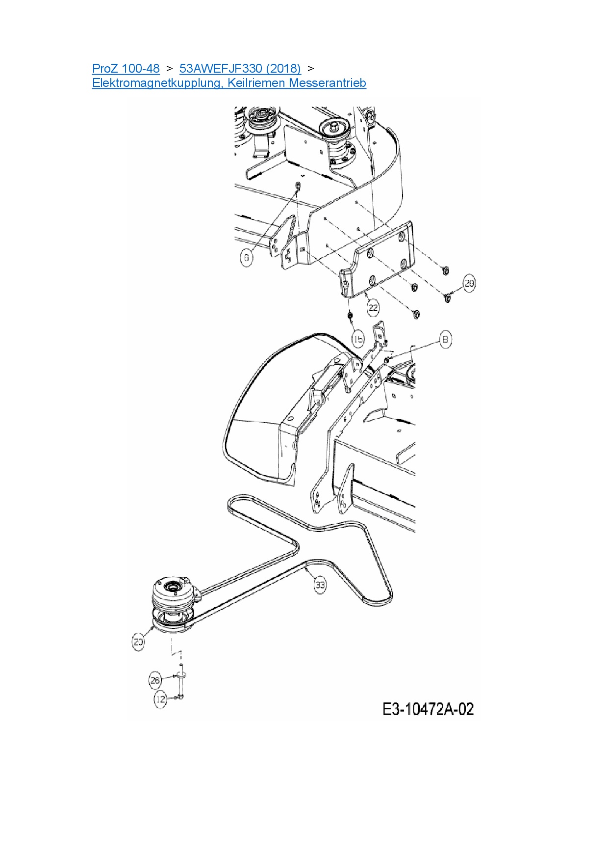 Download Ersatzteil-Zeichnung Cub Cadet ProZ 100-48 Zeichnung Elektromagnetkupplung, Keilriemen Messerantrieb (PDF-Format)