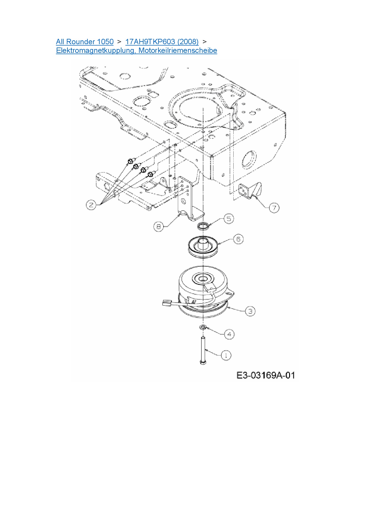 Download Ersatzteil-Zeichnung Cub Cadet All Rounder 1050 Zeichnung Elektromagnetkupplung, Motorkeilriemenscheibe (PDF-Format)