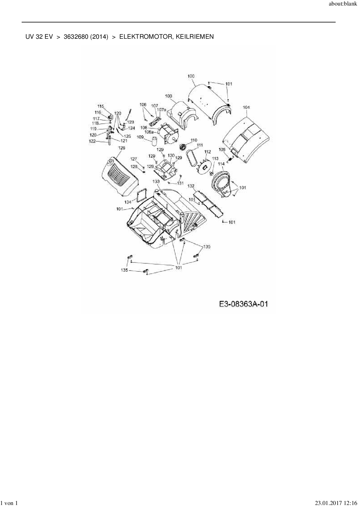 Download Ersatzteil-Zeichnung Wolf-Garten UV 32 EV Zeichnung Elektromotor, Keilriemen (PDF-Format)