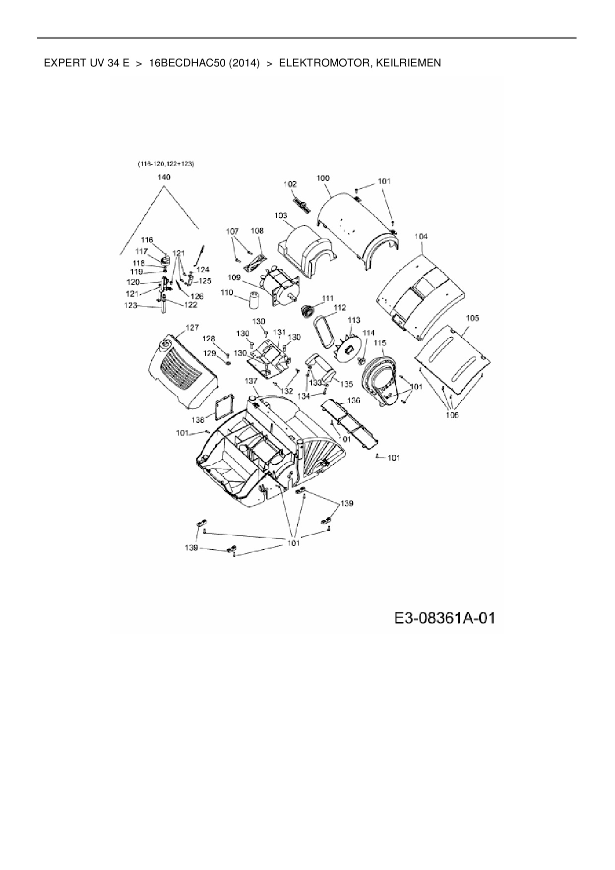 Download Ersatzteil-Zeichnung Wolf-Garten Expert Expert UV 34 E Zeichnung Elektromotor, Keilriemen (JPG-Format)