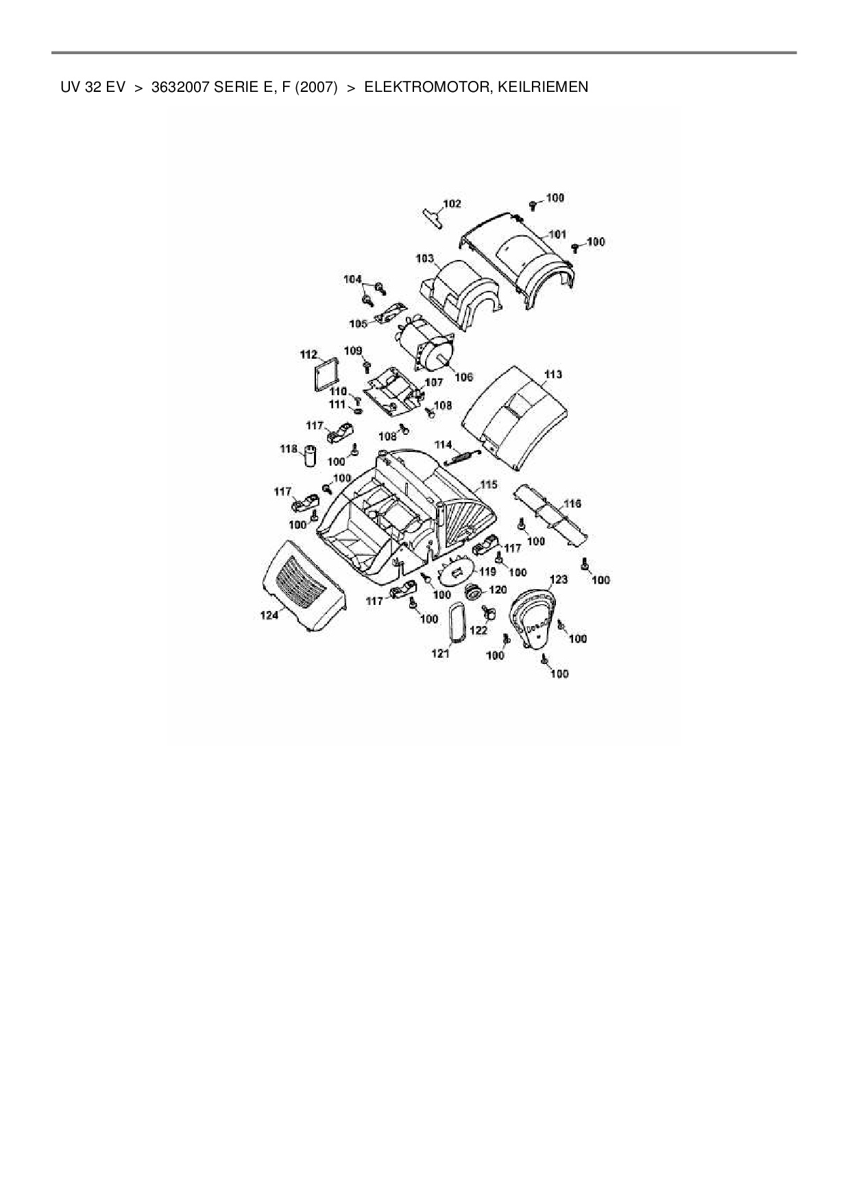 Download Ersatzteil-Zeichnung Wolf-Garten UV 32 EV Zeichnung Elektromotor, Keilriemen (PDF-Format)