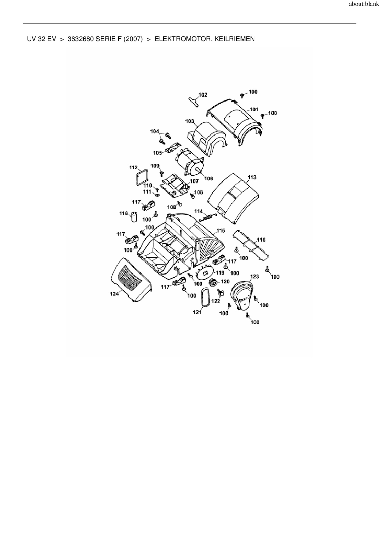 Download Ersatzteil-Zeichnung Wolf-Garten UV 32 EV Zeichnung Elektromotor, Keilriemen (PDF-Format)