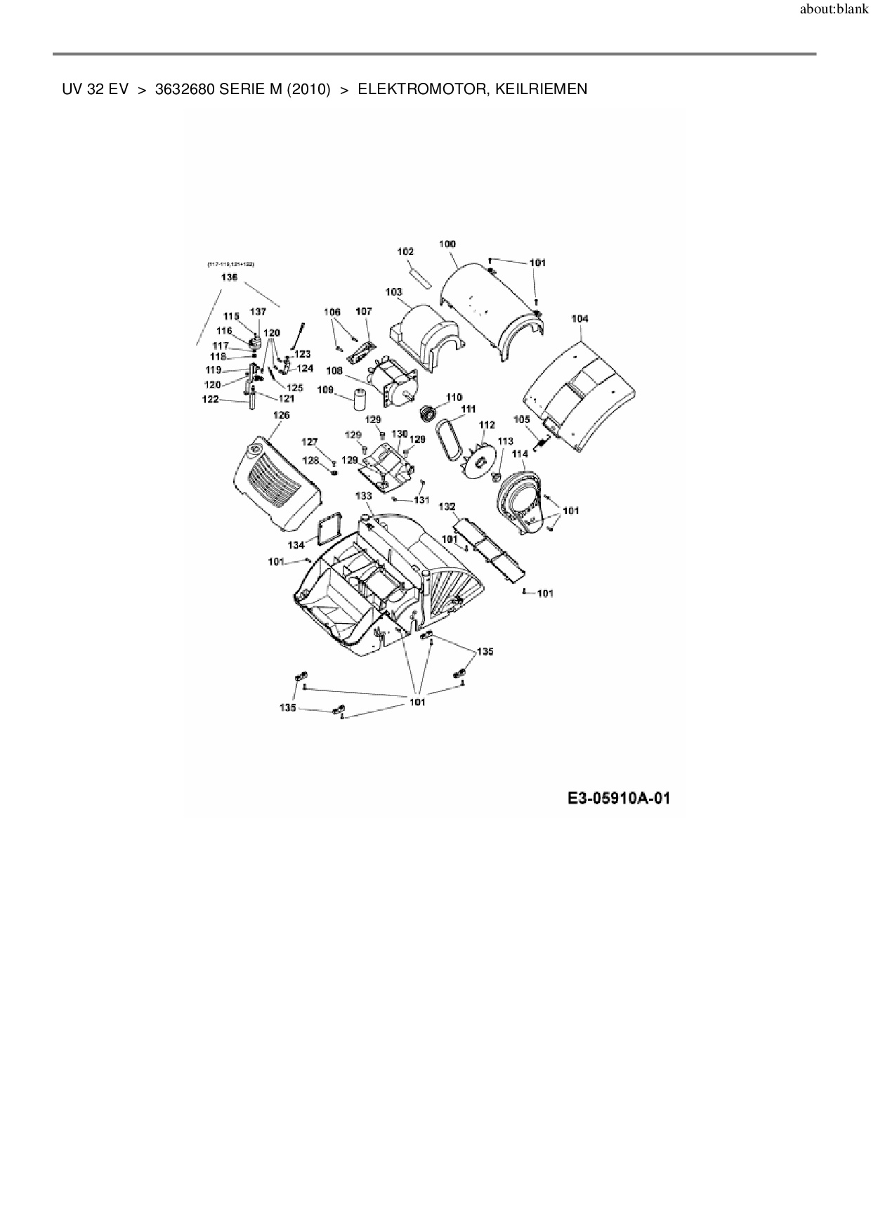 Download Ersatzteil-Zeichnung Wolf-Garten UV 32 EV Zeichnung Elektromotor, Keilriemen (PDF-Format)