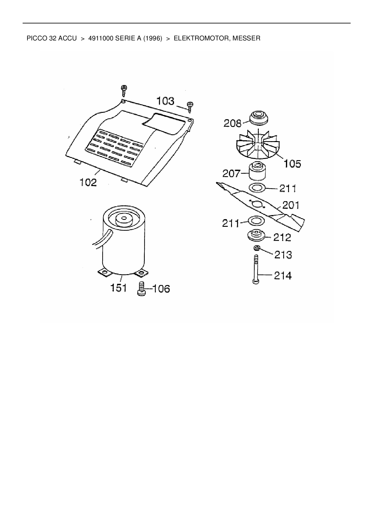 Ersatzteile für Akkumäher Wolf-Garten Picco 32 Accu aus der Zeichnung Elektromotor, Messer: