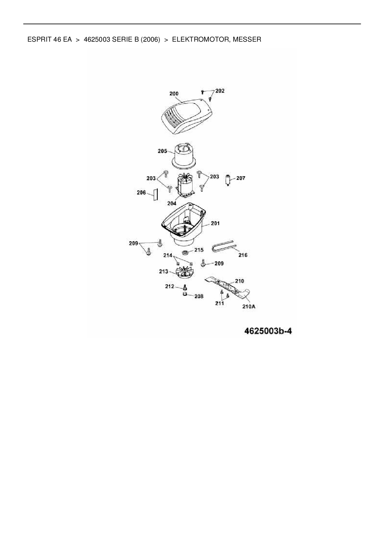 Ersatzteile für Elektromäher mit Antrieb Wolf-Garten Esprit 46 EA aus der Zeichnung Elektromotor, Messer: