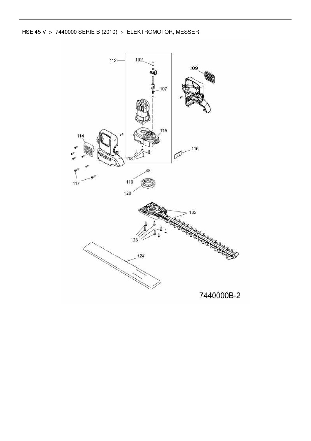 Zeichnung für Wolf-Garten Elektroheckenschere HSE 45 V mit der Geräte-Artikelnr. 7440000 Serie B ab Baujahr 2010: