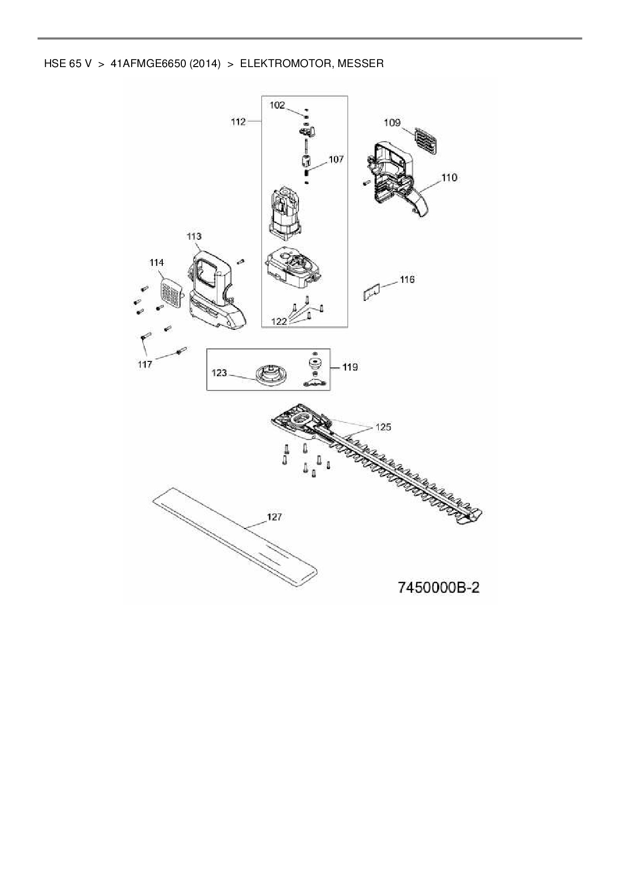 Zeichnung für Wolf-Garten Elektroheckenschere HSE 65 V mit der Geräte-Artikelnr. 41AFMGE6650 ab Baujahr 2014: