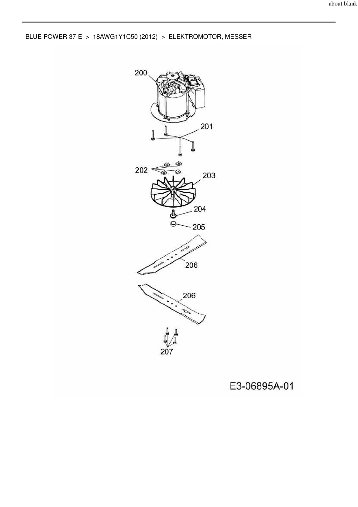 Ersatzteile für Elektromäher Wolf-Garten Blue Power 37 E aus der Zeichnung Elektromotor, Messer: