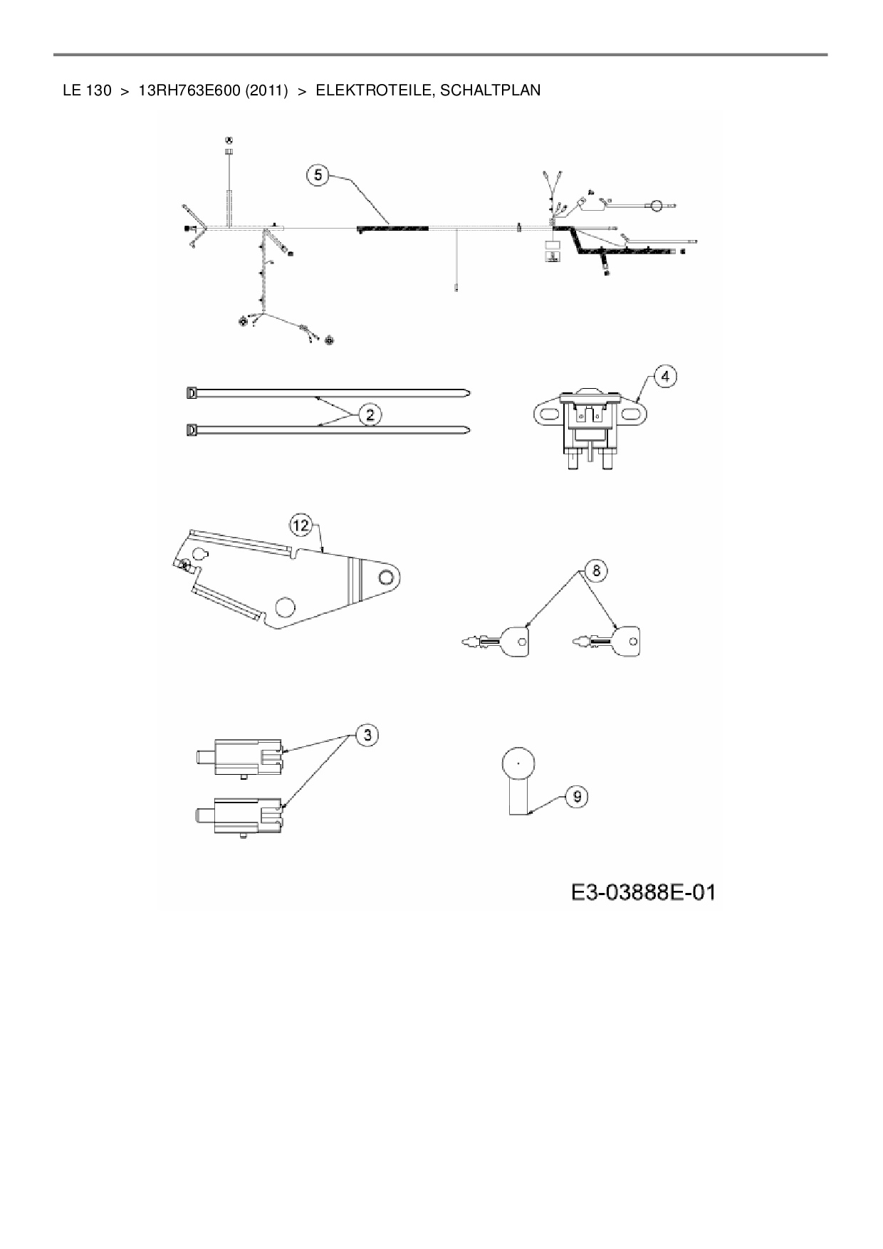 Download Ersatzteil-Zeichnung MTD LE 130 Zeichnung Elektroteile, Schaltplan (PDF-Format)