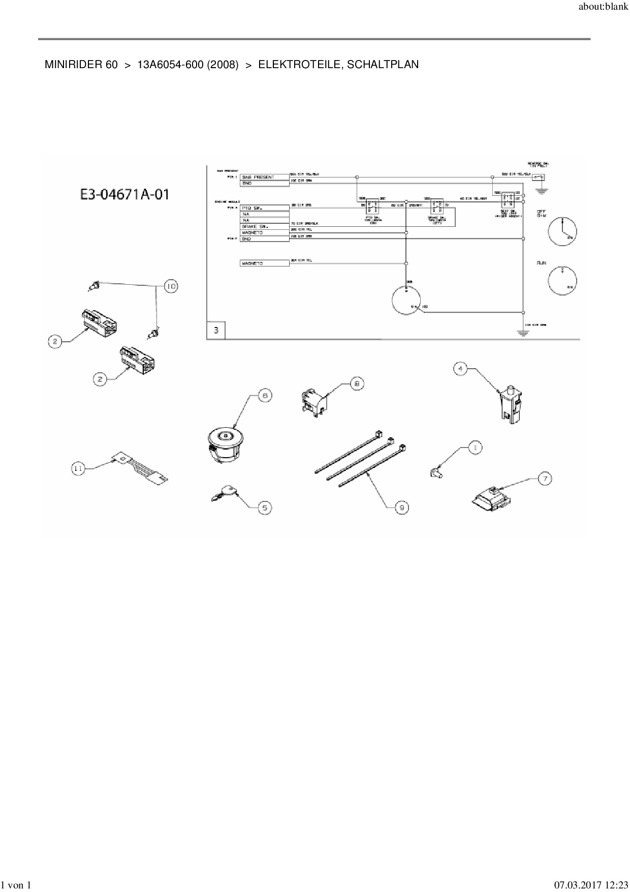 Ersatzteile für Rasentraktor MTD Minirider 60 aus der Zeichnung Elektroteile, Schaltplan: