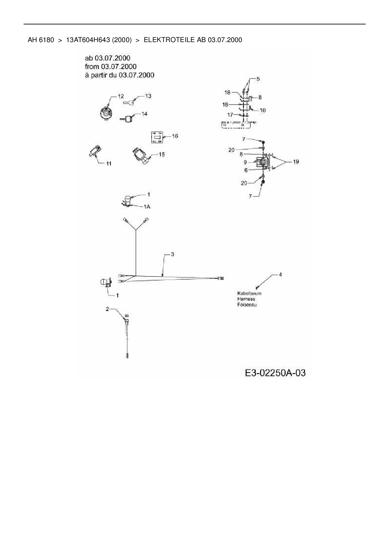Download Ersatzteil-Zeichnung Yard-Man AH 6180 Zeichnung Elektroteile ab 03.07.2000 (PDF-Format)
